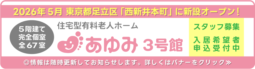 【あゆみ3号館】 【求人情報】 有料老人ホーム あゆみ3号館(東京都足立区・2026年5月誕生予定) 情報