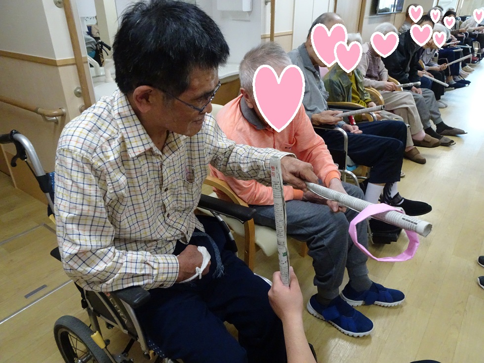 最後の人まで輪が到着したあとは職員の持つ棒に輪を通してゴールです!!
