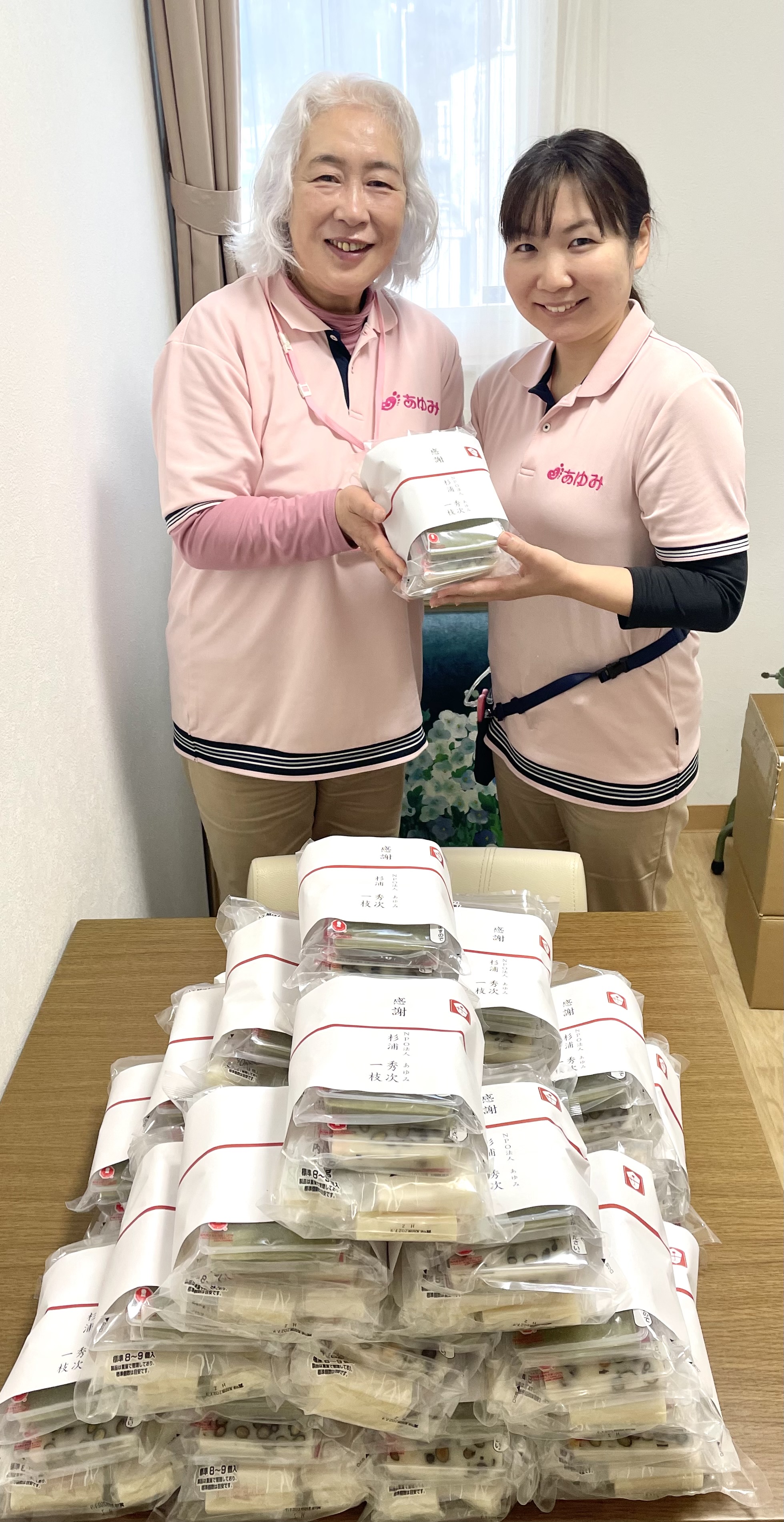 年末を迎え、理事長、専務より日頃の労をねぎらい職員へお餅(豆餅、よもぎ餅、白もち)が贈られました。